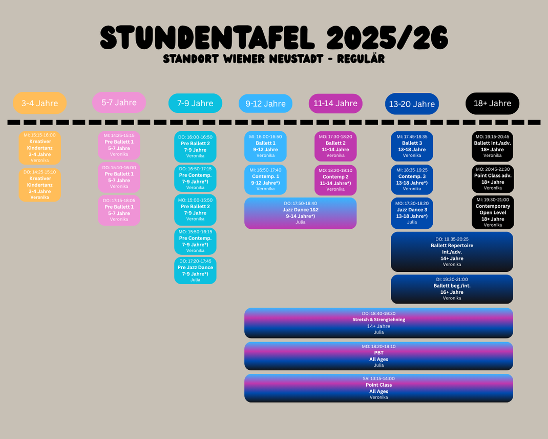 *) Kurs nur in Verbindung mit einem Ballettgrundkurs buchbar!